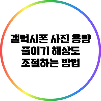 갤럭시폰에서 사진 용량 줄이기를 위해 해상도를 조절하는 방법은 매우 유용해요. 사진 용량을 줄이는 방법을 통해 더욱 효율적인 기기 사용이 가능하답니다. 여기에 추가하여, 데이터를 절약하고 저장 공간을 확보하는 차원에서도 큰 도움이 됩니다. 그러므로 여러분들도 지금 당장 해상도를 조절해보세요.