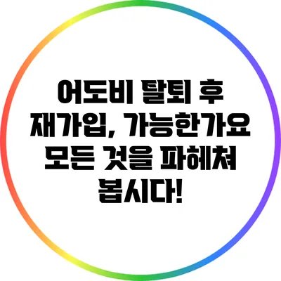 어도비는 사용자가 탈퇴한 후 언제든지 다시 재가입할 수 있는 옵션을 제공하고 있어요. 단, 몇 가지 조건과 절차가 있으니 이를 잘 이해하는 것이 중요해요.
