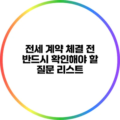 전세 계약은 많은 비용이 들어가는 일인 만큼 철저히 준비해야 안심하고 생활할 수 있어요. 계약서의 내용, 주택의 상태, 환경 조사를 소홀히 하지 마세요. 전세 계약 체결 전 물어볼 질문을 준비하는 것은 매우 중요한 과정이에요. 준비된 만큼 좋은 결과가 기다리고 있을 거예요. 계약을 하기 전 꼭 실천해 보세요, 소중한 나의 공간을 지키는 첫 번째 단계랍니다!