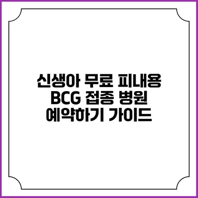 신생아에게 필요한 예방접종 중 하나인 BCG 접종은 결핵 예방에 매우 중요한 역할을 합니다. 많은 부모님들이 이 접종에 대해 잘 모르실 수도 있으니, 이번 블로그에서는 BCG 접종의 중요성 및 무료 병원 예약 방법에 대해 상세히 알아보도록 하겠습니다.