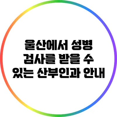 여기서는 울산에서 성병 검사를 받을 수 있는 일부 산부인과를 소개할게요. 이러한 병원들은 전문적인 진료와 상담을 제공하고 있으니, 필요할 경우 방문해 보세요.