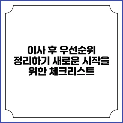 이사를 하게 되면 새로운 환경에 적응해야 하는 여러 가지 과제가 생기죠. 특히 이사 후에는 우선순위 정리가 매우 중요해요. 새로운 집으로의 전환기를 잘 관리하면 새로운 시작을 더욱 뜻깊게 만들 수 있답니다. 이 글에서는 이사 후 어떤 우선순위로 정리를 해야 하는지, 알아두면 좋은 팁과 함께 자세히 설명해드릴게요.