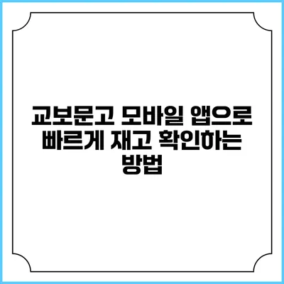 ✅ 교보문고 앱으로 빠른 재고 확인 방법을 알아보세요.
