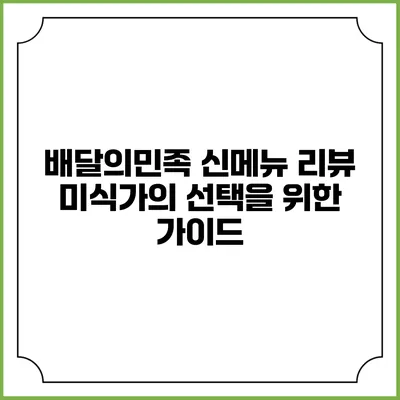 배달의민족에서 매일 새롭게 선보이는 신메뉴는 미식가들에게는 누구보다 큰 관심사입니다. 이 포스트에서는 배달의민족의 최신 신메뉴를 리뷰하고 그 선택에 도움을 줄 수 있는 정보를 제공할게요. 기대되는 신메뉴, 과연 어떤 맛일까요?